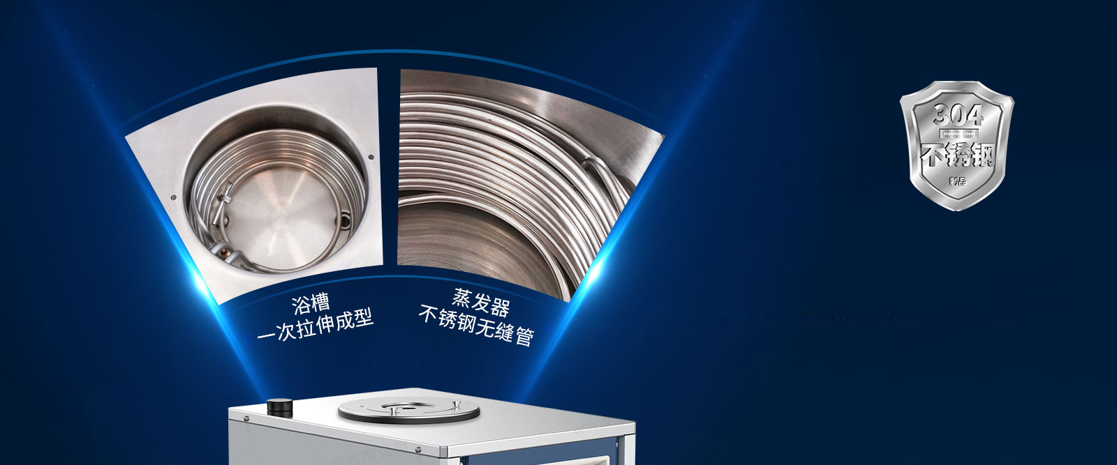 蒸發(fā)器采用304不銹鋼盤管式蒸發(fā)器,蒸發(fā)器安裝在儲(chǔ)液槽內(nèi),載冷劑凍結(jié)時(shí)不會(huì)損壞蒸發(fā)器。
